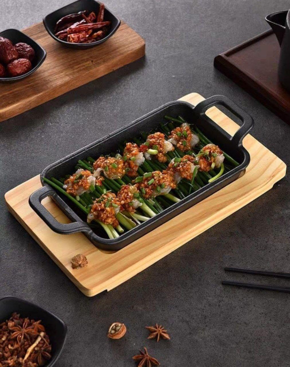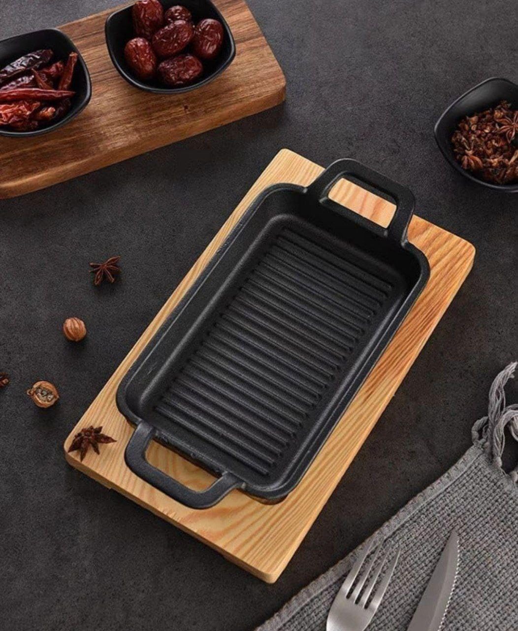 Gus tava - i za pripremu i za serviranje hrane! Dimenzije: 22x14cm. *sa drvenim pladnjem.